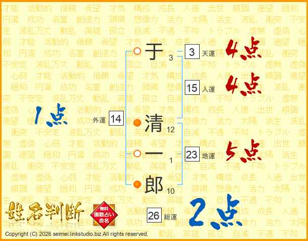 于清一郎さんの総運は26画の2点!