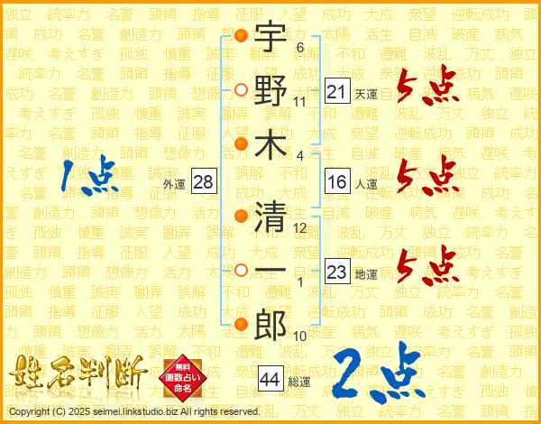 宇野木清一郎さんの天運は21画の5点!