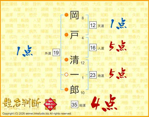 岡戸清一郎さんの総運は35画の4点!