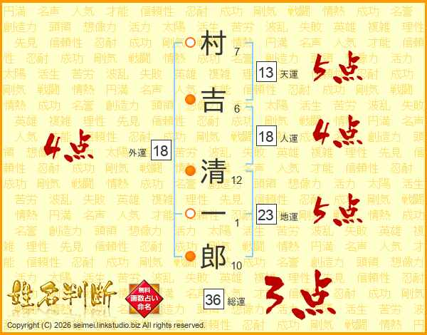 村(7画)吉(6画) 清(12画)一(1画)郎(10画)