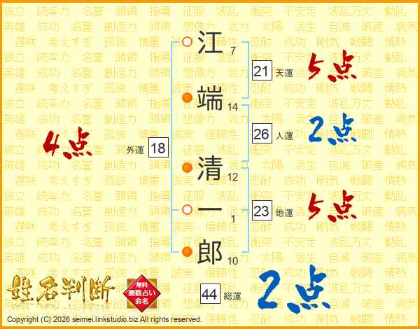 江端清一郎さんの総運は44画の2点!