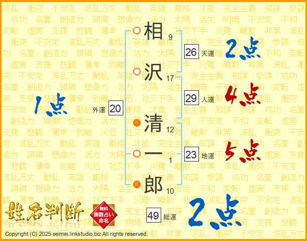 相(9画)沢(17画) 清(12画)一(1画)郎(10画)