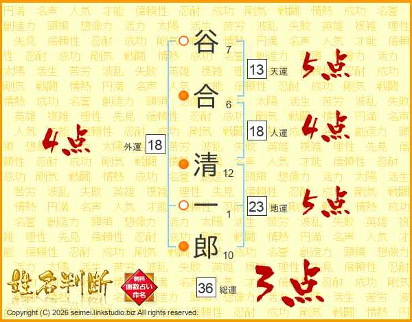 谷合清一郎さんの総運は36画の3点!
