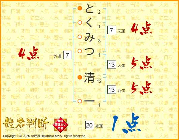とくみつ清一さんの天運は7画の4点!
