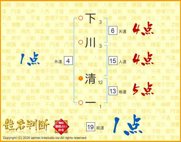 下川清一さんの総運は19画の1点!
