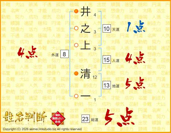井之上清一さんの総運は23画の5点!
