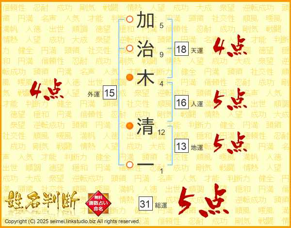 加治木清一さんの総運は31画の5点!