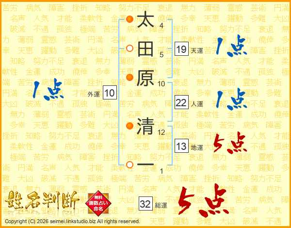 太田原清一さんの人運は22画の1点!