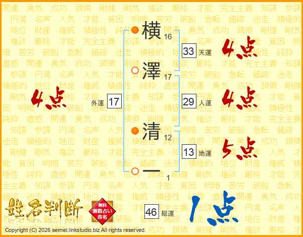 横澤清一さんの総運は46画の1点!