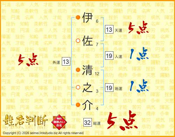 伊佐清之介さんの総運は32画の5点!