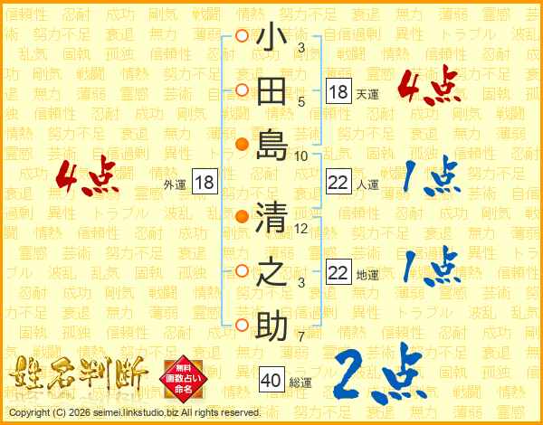 小田島清之助さんの天運は18画の4点!