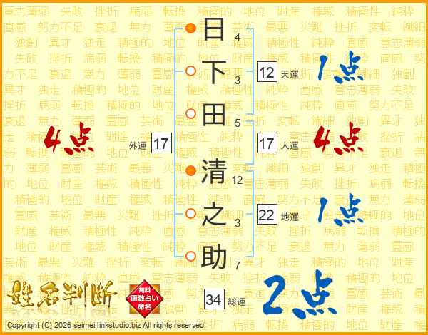 日(4画)下(3画)田(5画) 清(12画)之(3画)助(7画)