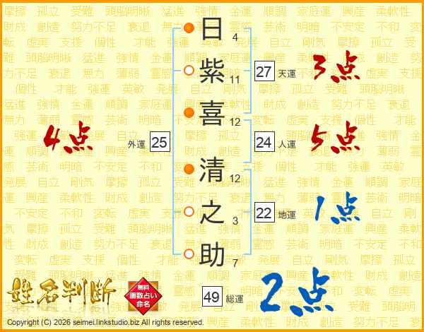 日紫喜清之助さんの総運は49画の2点!