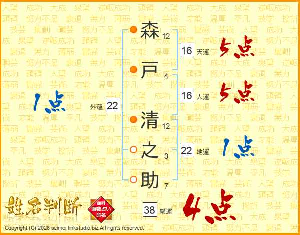 森戸清之助さんの総運は38画の4点!
