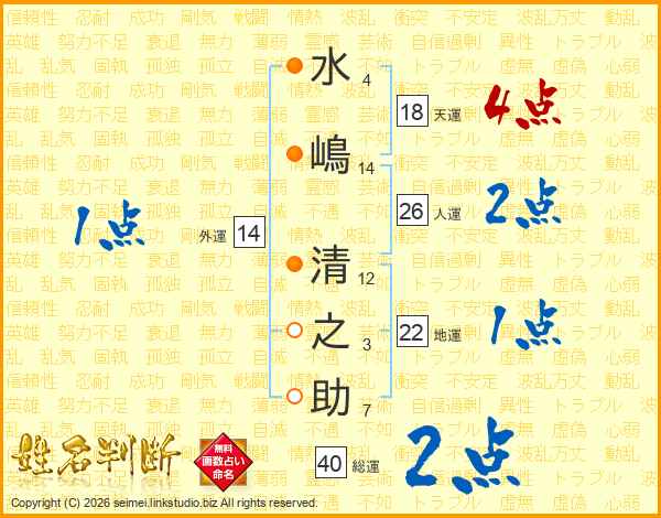 水嶋清之助さんの総運は40画の2点!