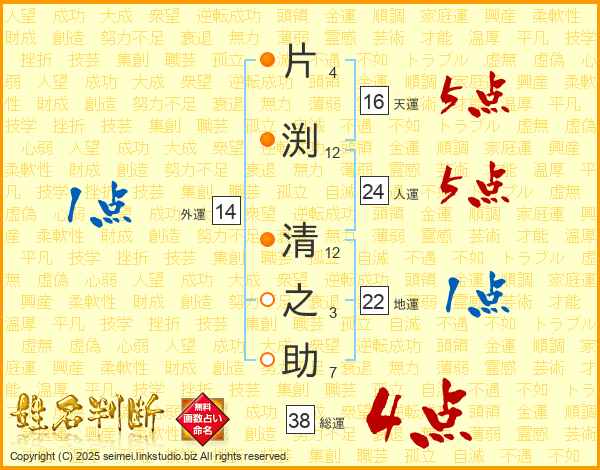 片渕清之助さんの総運は38画の4点!