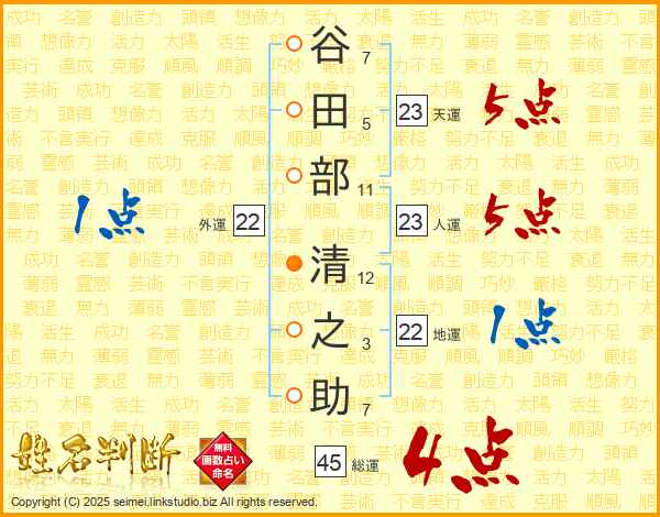 谷(7画)田(5画)部(11画) 清(12画)之(3画)助(7画)