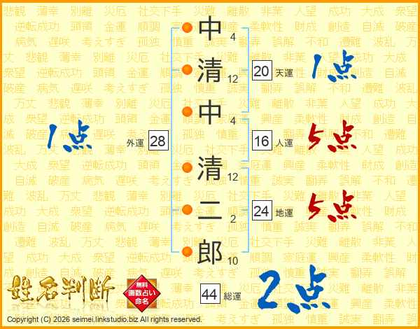 中(4画)清(12画)中(4画) 清(12画)二(2画)郎(10画)
