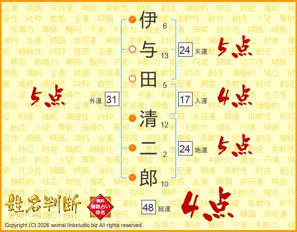 伊与田清二郎さんの総運は48画の4点!
