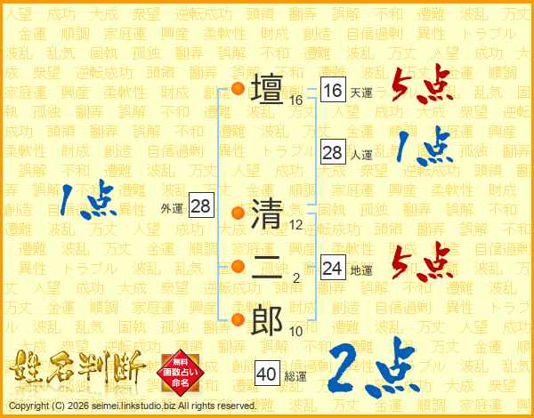 壇清二郎さんの総運は40画の2点!