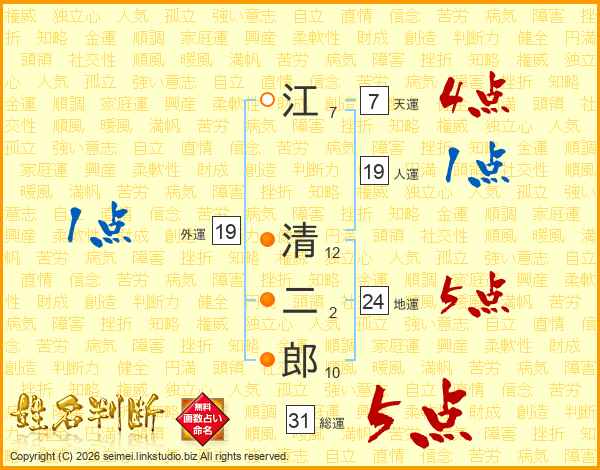 江清二郎さんの総運は31画の5点!