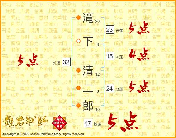 滝下清二郎さんの外運は32画の5点!