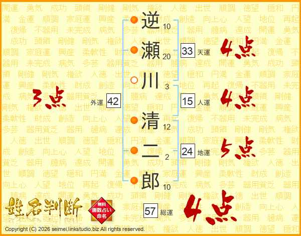 逆瀬川清二郎さんの総運は57画の4点!