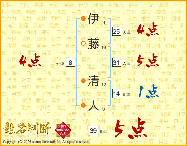 伊藤清人さんの総運は39画の5点!
