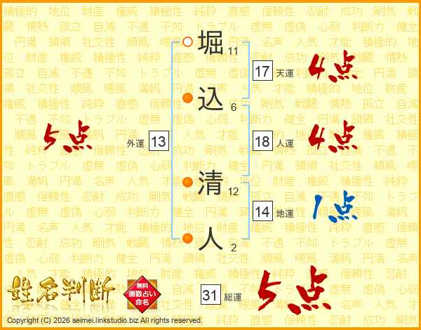 堀込清人さんの総運は31画の5点!
