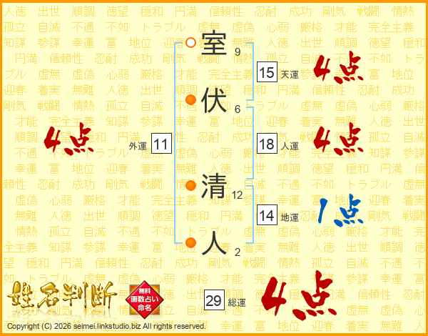 室伏清人さんの総運は29画の4点!