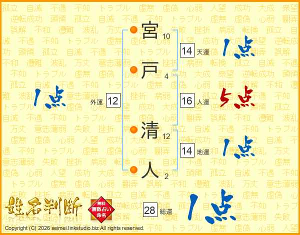 宮戸清人さんの総運は28画の1点!