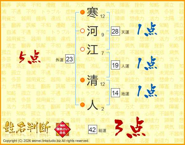 寒(12画)河(9画)江(7画) 清(12画)人(2画)