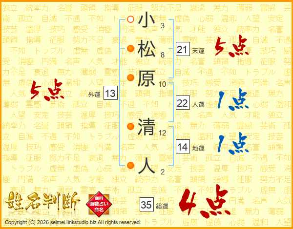小(3画)松(8画)原(10画) 清(12画)人(2画)