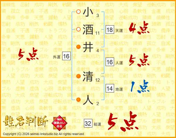 小(3画)酒(11画)井(4画) 清(12画)人(2画)