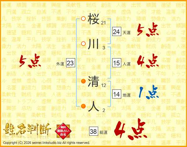 桜川清人さんの総運は38画の4点!