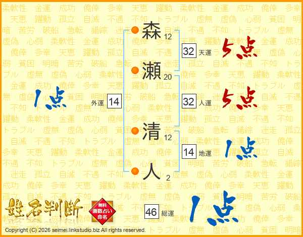 森瀬清人さんの総運は46画の1点!