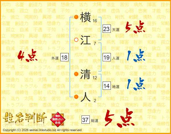 横江清人さんの総運は37画の5点!