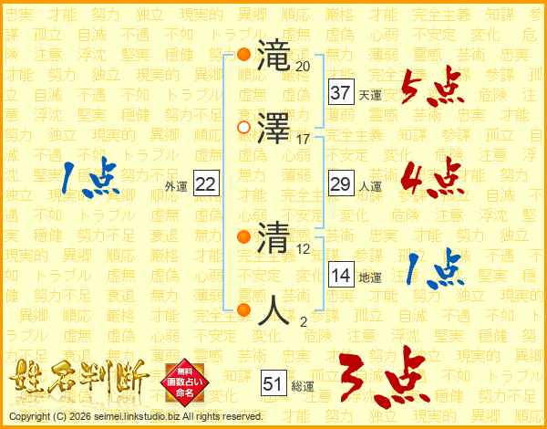 滝澤清人さんの天運は37画の5点!