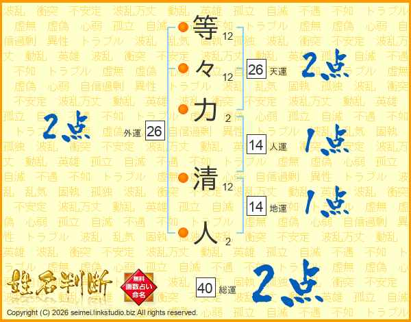 等(12画)々(12画)力(2画) 清(12画)人(2画)