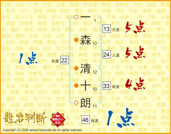 一(1画)森(12画) 清(12画)十(10画)朗(11画)