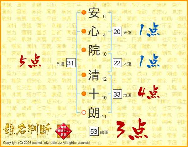 安心院清十朗さんの総運は53画の3点!