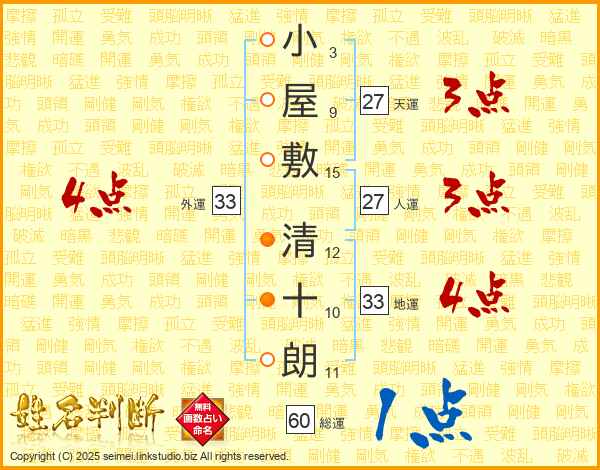 小屋敷清十朗さんの地運は33画の4点!
