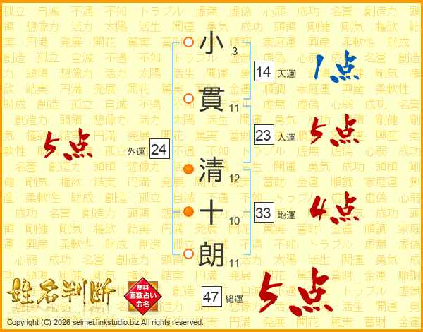 小貫清十朗さんの総運は47画の5点!