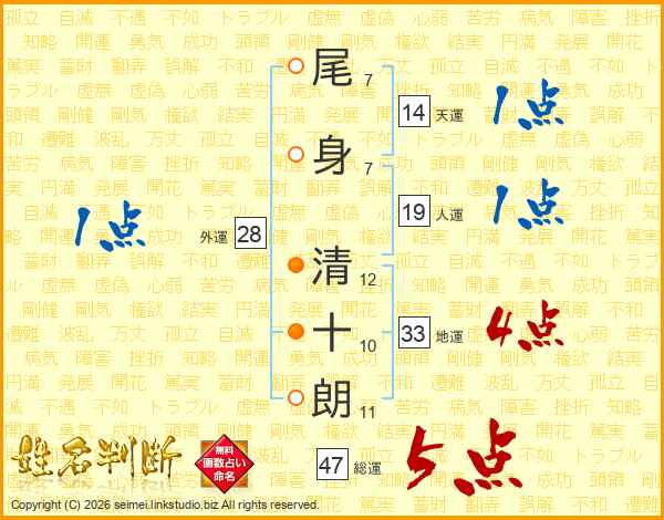 尾(7画)身(7画) 清(12画)十(10画)朗(11画)