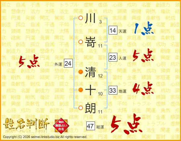 川(3画)嵜(11画) 清(12画)十(10画)朗(11画)