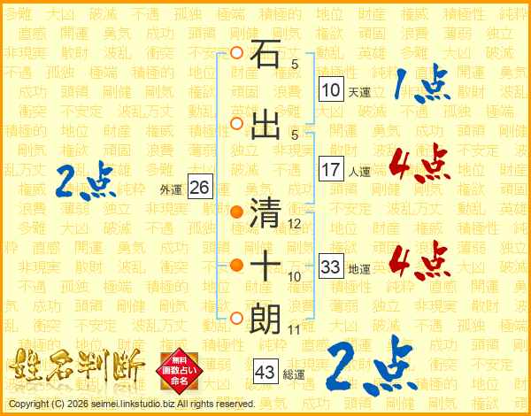 石出清十朗さんの総運は43画の2点!