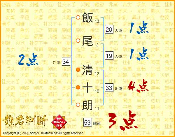 飯尾清十朗さんの天運は20画の1点!