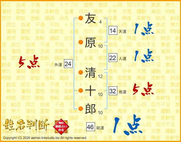 友原清十郎さんの総運は46画の1点!