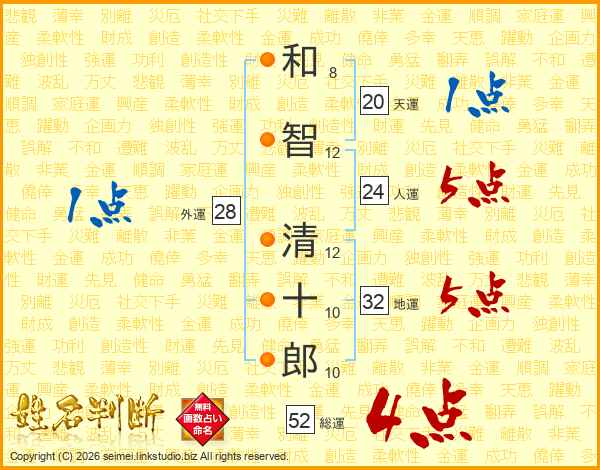 和(8画)智(12画) 清(12画)十(10画)郎(10画)