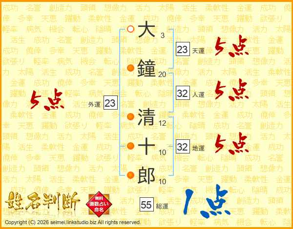 大(3画)鐘(20画) 清(12画)十(10画)郎(10画)